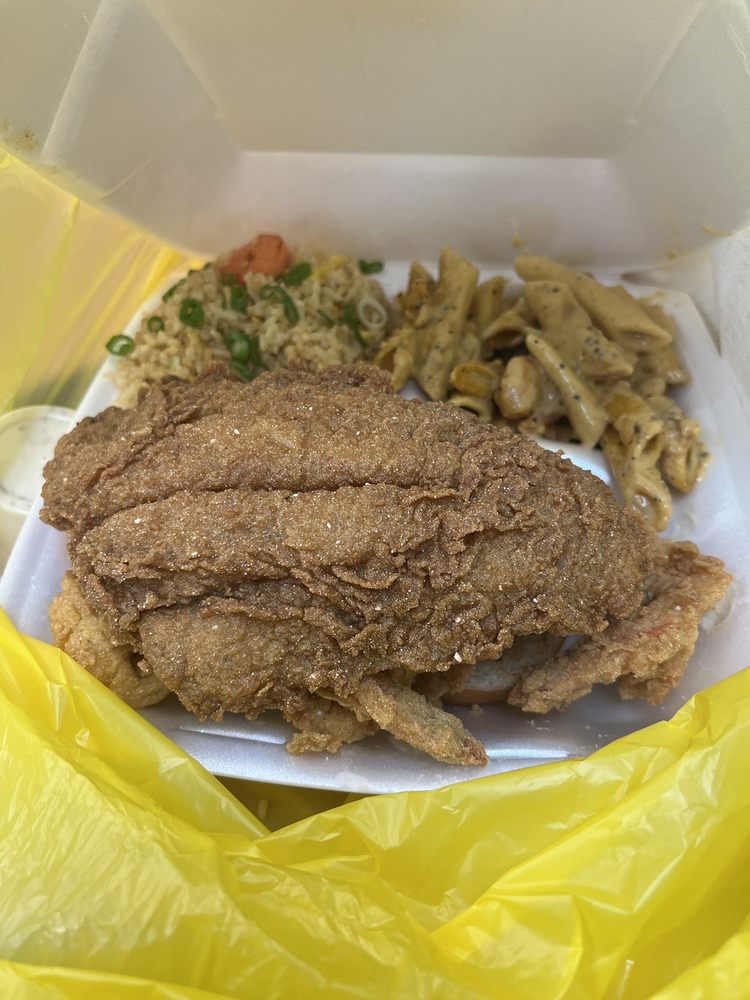 Fried shrimp and catfish serve with rice or Salad and French fries