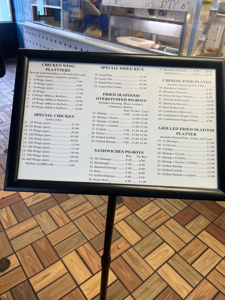 The menu offers a variety of chicken wing platters, from a modest 6 wings for $10.99 to a substantial 200 wings for $149.99, all served with choices like shrimp fried rice or French fries. For seafood lovers, the fried catfish specials are equally enticing, with prices starting at just $25.99 for 25 pieces.